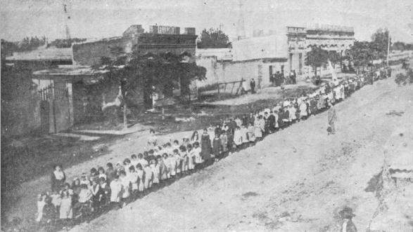 1912 - DESFILE DE ALUMNOS DE LA ESCUELA NACIONAL Nº 36 por la calle Libertad, entre Belgrano y San Martín.