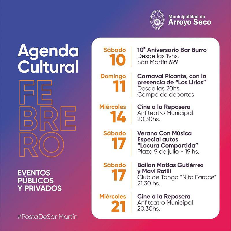 La Secretaría de Cultura municipal presentó la agenda de las actividades culturales y artísticas que habrá en Arroyo Seco durante todo el mes de febrero, tanto en ámbito público como privado.