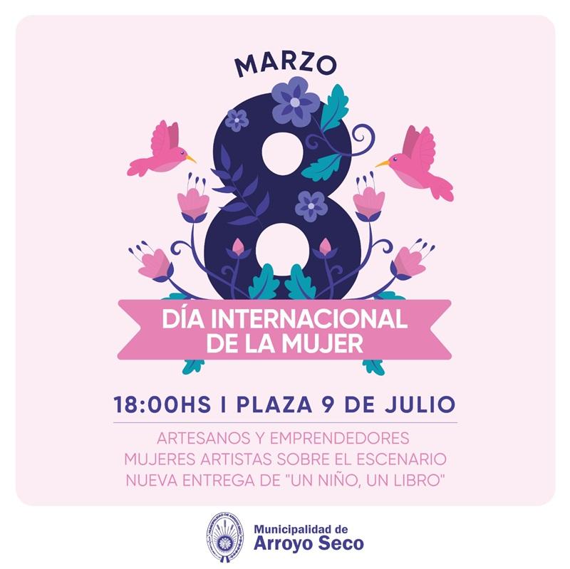 En el marco del Día Internacional de la Mujer, la Municipalidad de Arroyo Seco invita a la comunidad a participar de una jornada especial que se realizará el 8 de marzo en la Plaza 9 de Julio partir de las 18.00 hs.