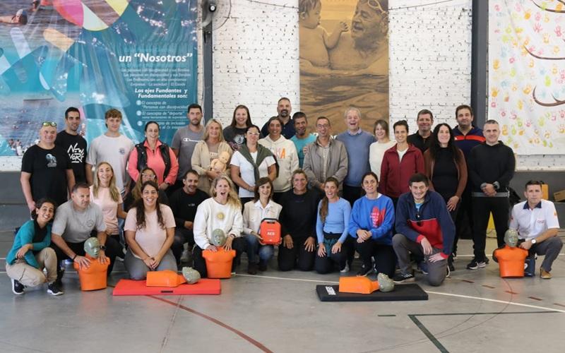 En el marco de una capacitación en Reanimación Cardiopulmonar (RCP) y primeros auxilios destinada a guardavidas y docentes de educación física, el intendente Daniel Tonelli realizó la entrega de un desfibrilador externo automático (DEA) para el Complejo Integral “Los Tiburones”.